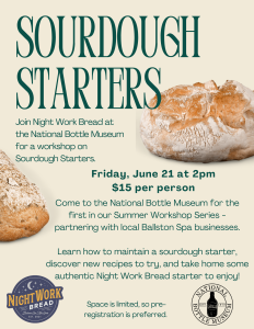 Join Night Work Bread at the National Bottle Museum for a workshop on Sourdough Starters!