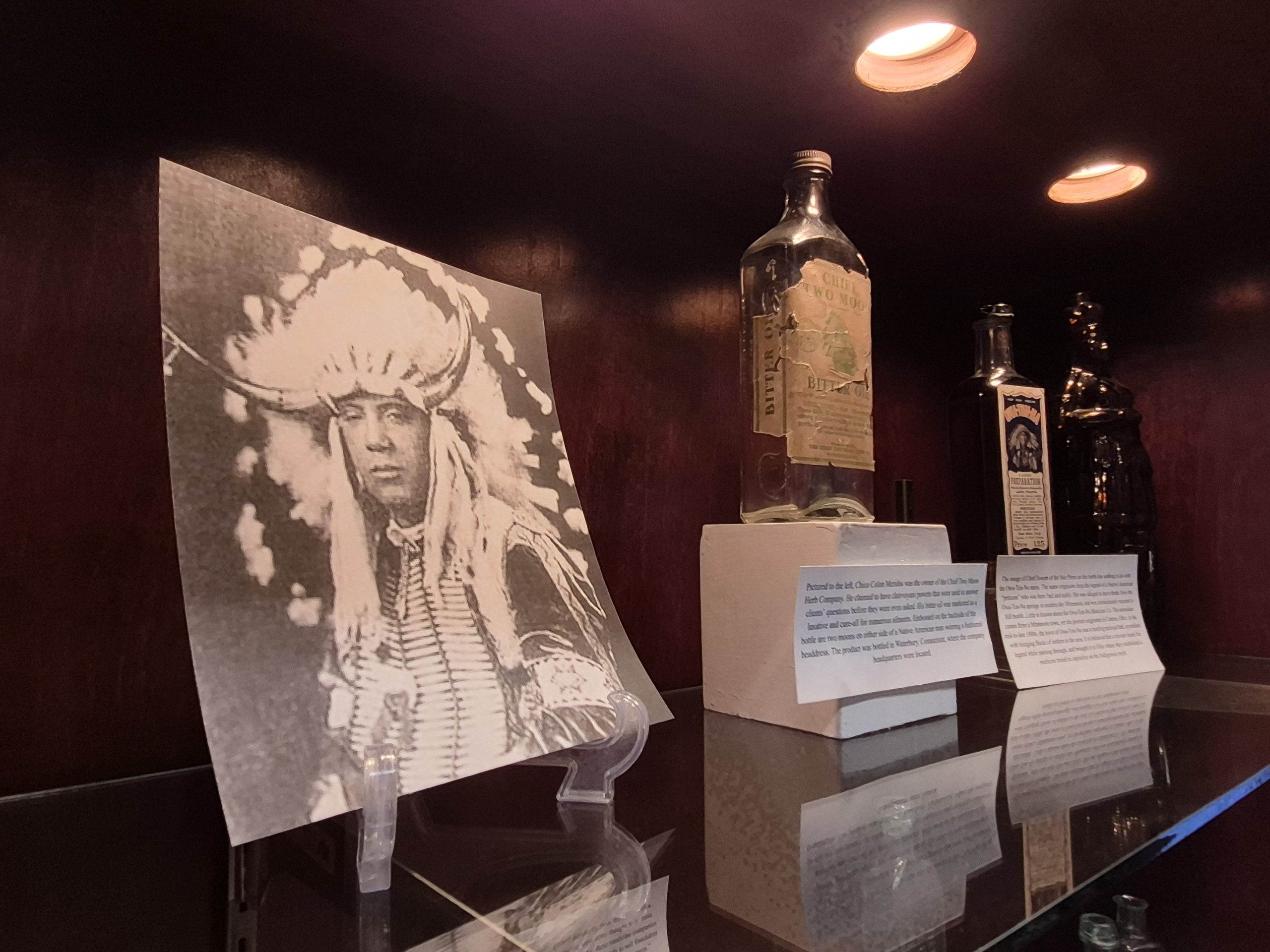 Over the summer, we were lucky to have Ted Fredericksen (New Paltz '28) as our summer intern. For his final project he created a new exhibit for us, "Indian" Patent Medicine. Using bottles from the museum's collection, he traced the history of many of the major purveyors of patent medicines who attempted to increase the legitimacy of their products by tying them to Native American themes and ingredients. The exhibit also traces how ethnocentric ideas of indigenous "savagery" and "primitiveness" were used to imply products that were pure and more natural than those of competitors, even though all of them were essentially snake oil.