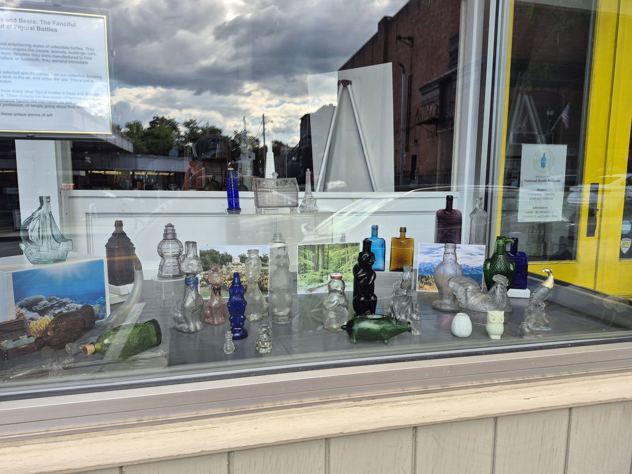 Figurals are one of the most entertaining styles of collectible bottles. They are blown or molded into common shapes like people, animals, buildings, cars, tools and toys, and so much more. Whether they were manufactured to hold whiskey or wine, cosmetics, bitters, or foodstuffs, they demand immediate attention. For this display we have selected specific pieces from our collection focusing on buildings and animals on land, in the air, and under the sea. This is just a small part of our figural collection.